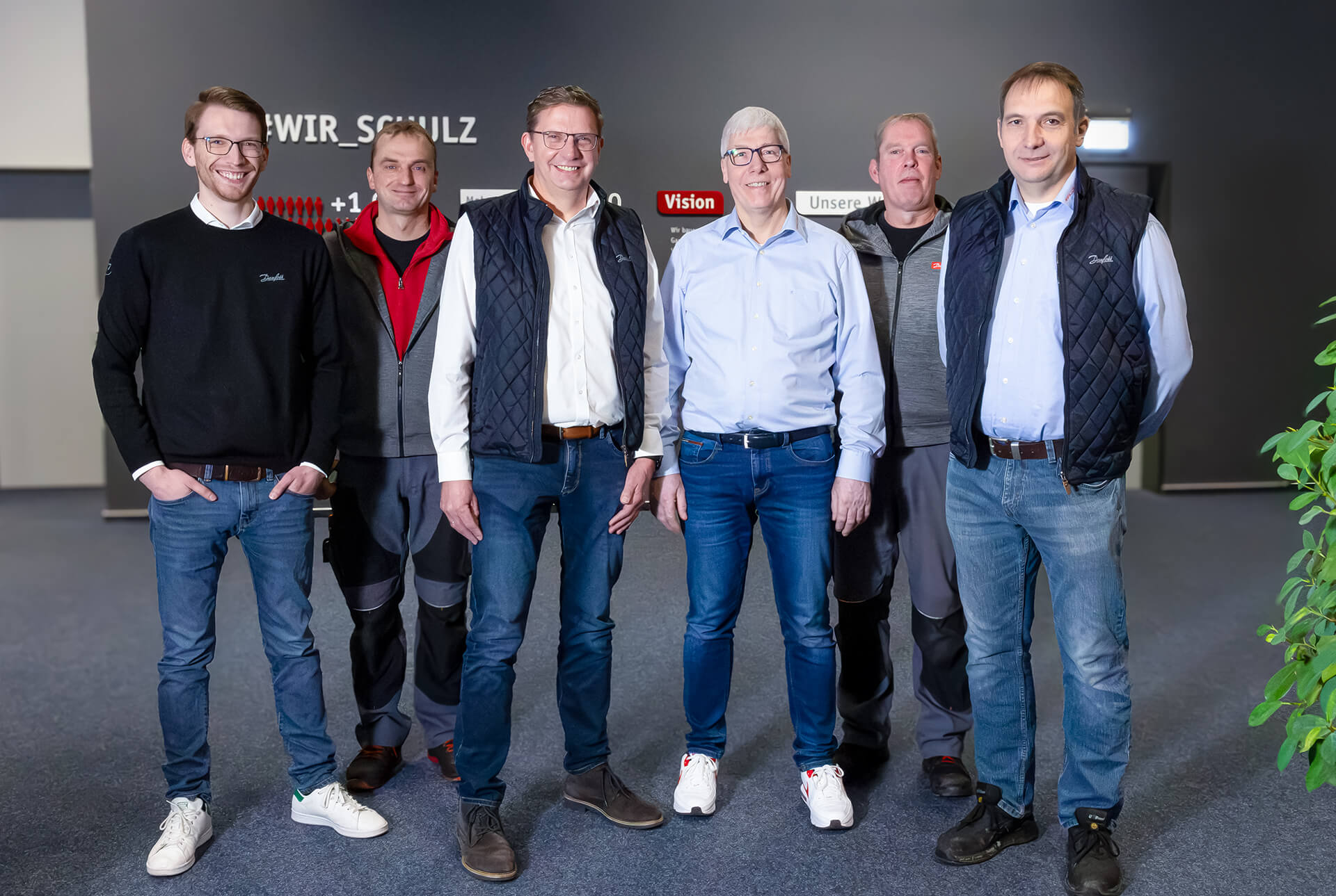 Unser Danfoss-Team: v. l. Christian Harms-Zumbrägel, Magnus Meyer, Jürgen Borchert, Ludger Tapken, Helmut Böckelmann und Thorsten Kröger.