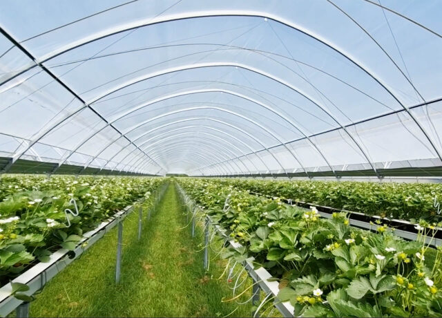 In der Landwirtschaft haben Unwetter, Starkregen oder Frost schnell verheerende Folgen für die Ernte. Nicht so bei Frank Kock in Visbek. Dort wachsen die Erdbeeren unter optimierten Klimabedingungen. Der landwirtschaftliche Betrieb hat dafür insgesamt 33 Haygrove-Folientunnel angeschafft, die Dank bewährter SCHULZ-Systemtechnik vollautomatisch für ideale Wachstumsbedingungen sorgen. Temperatur und RF-Feuchtesensoren sowie eine Wetterstation messen in den jeweils zehn mal 120 Meter großen Gewächstunneln neben Temperatur und relativer Luftfeuchte auch die Windrichtung und -geschwindigkeit. Zusammen mit den Daten von Regensensoren regelt der von uns installierte Schaltschrank mit AFC-Steuerung dann das Klima in den 33 Folientunneln.